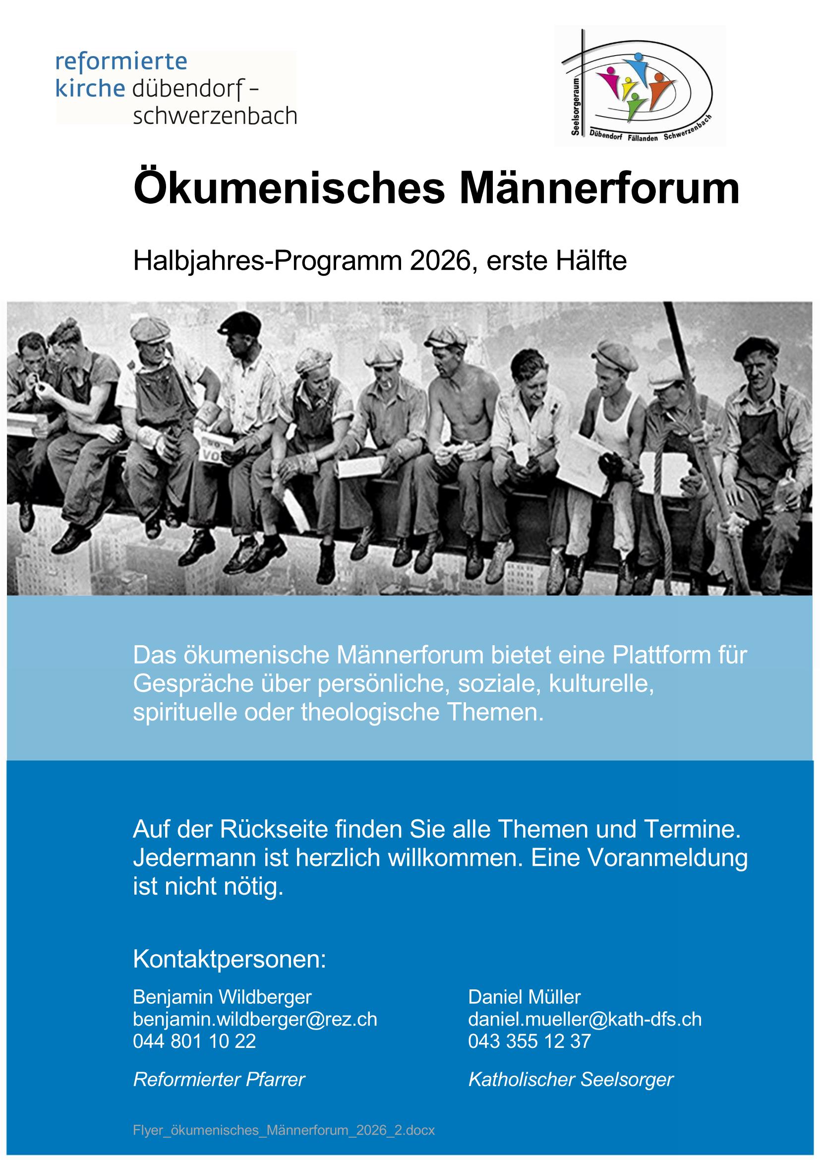 Bietet Männern auf christlicher Basis die Gelegenheit zum Gedankenaustausch. Das Leitungsteam bereitet ein Thema mit Fakten, Informationen und Fragen für die Diskussion vor und führt durch die Gespräche.